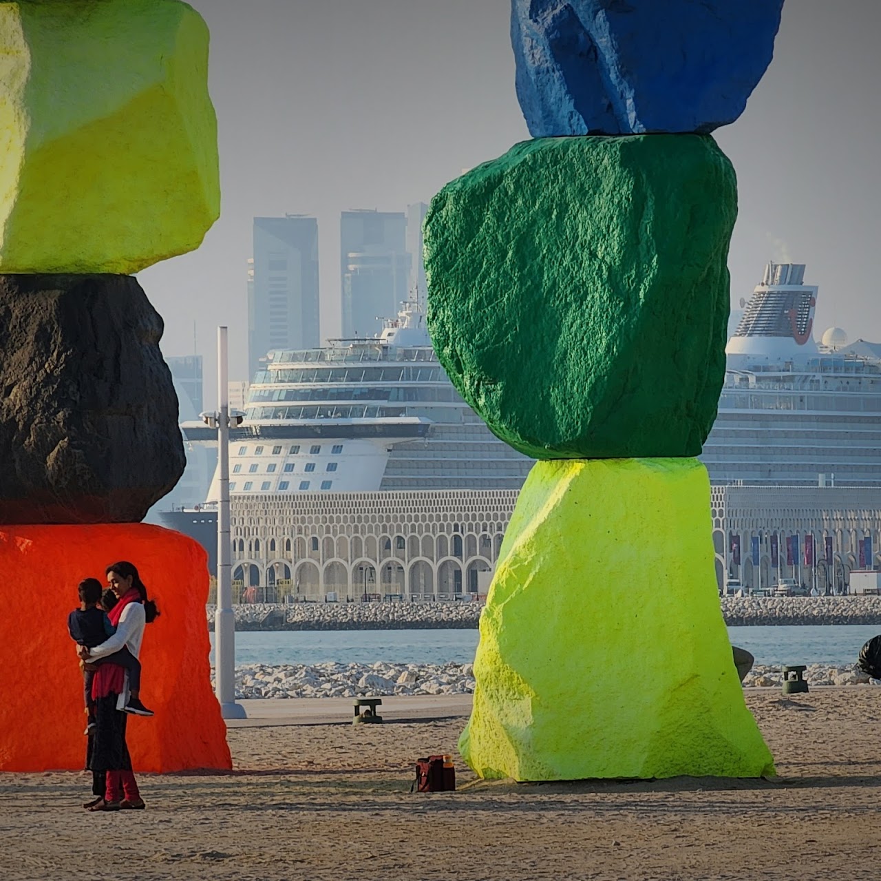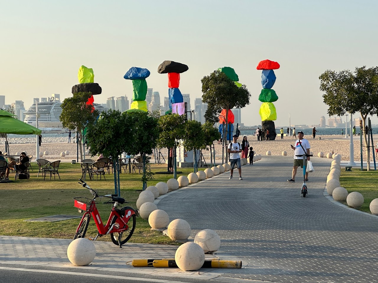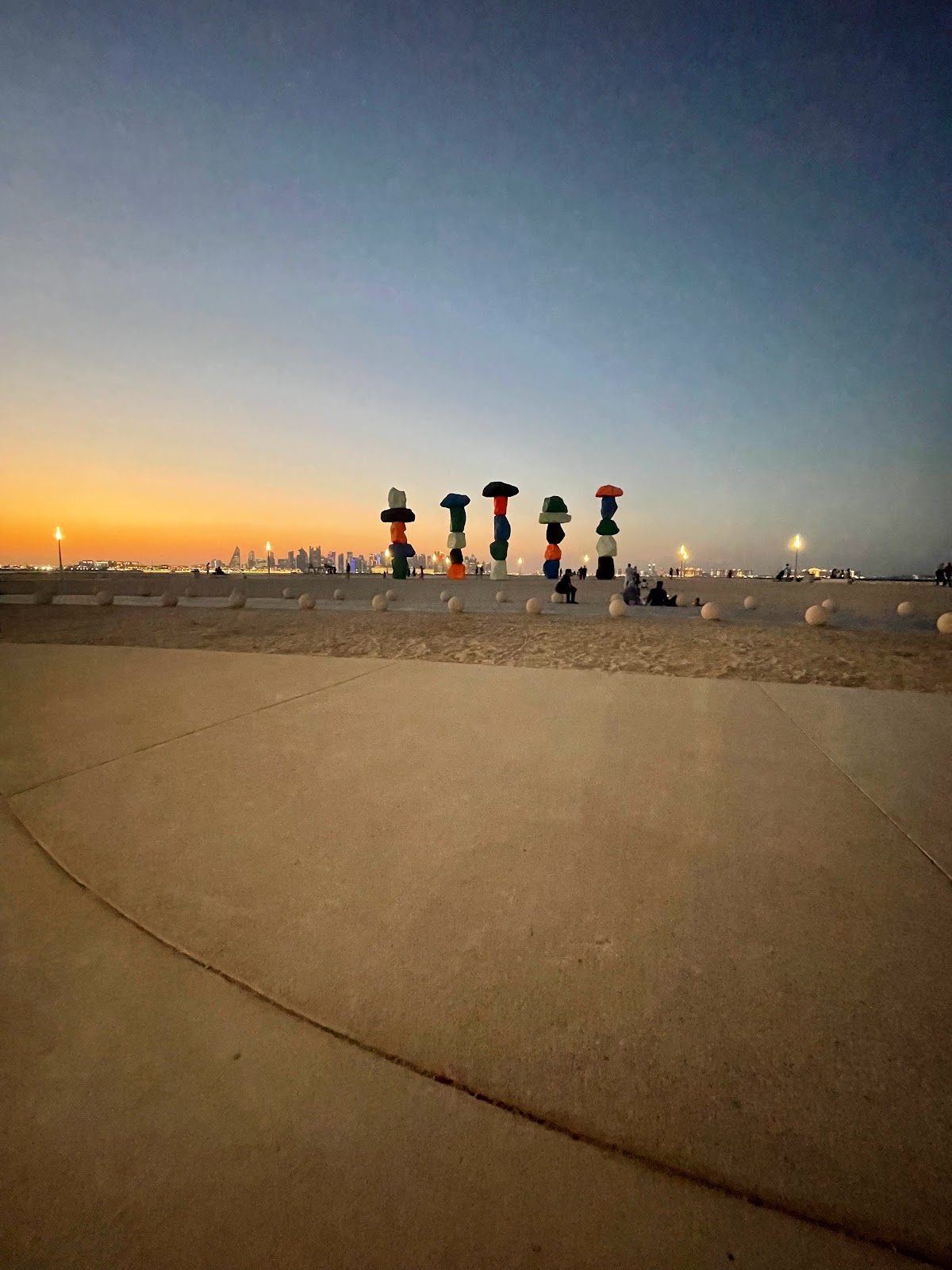 Горы Дохи — скульптурная инсталляция, вдохновленная искусством медитативного балансирования на камнях. Milestones отмечает трансформацию экономики Катара. Эта скульптурная инсталляция сочетает в себе географические образования и абстрактные композиции, вдохновленные искусством медитативного балансирования на камнях.